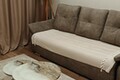 Большой новый диван с раскладным механизмом в гостиной.